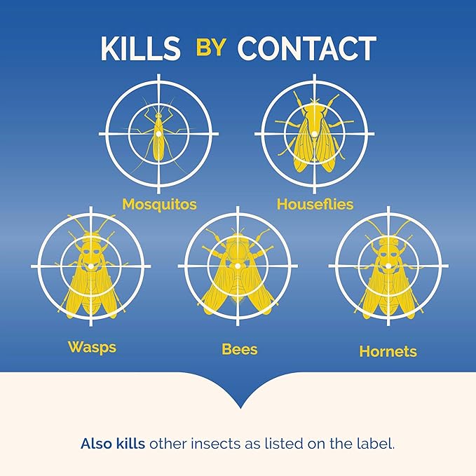 - KILLS FLYING INSECTS BY CONTACT: Kills houseflies, mosquitoes and other listed insects.