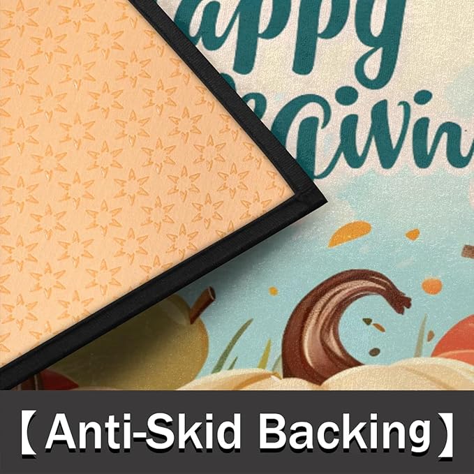 cfpolar Half Round Door Mat, Thanksgiving Day Semicircle Welcome Mat for Indoor Entrance, Garage, Patio - 24 x 36 in