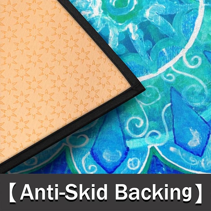 cfpolar Half Round Blue Boho Mandala Semicircle Mat, Non Slip Area Rug Soft Doormat for Front Door Indoor Entrance Welcome Mat for Garage Patio Home Decor 24 x 36 in