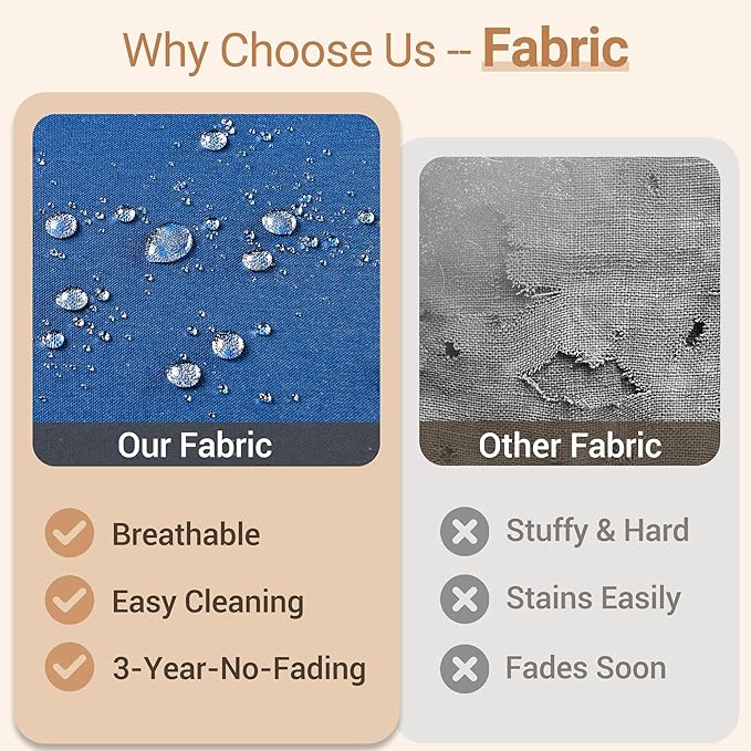 - Texture Woven Fabric: Selected yarn dyed woven fabric, the yarns are dyed and treated before woven into fabric for out door fading resistant and water repellent. Looks and touches with high-end woven texture. No more worry about getting cheaply made thin print fabric.Daily use 3 years no fading. Detachable & washable