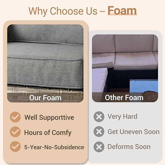- All Weather & Durable: Selected anti-ageing treated thicken PE wicker rattan for UV resistant, wear resistant and all weatherproof. 3D strengthen and widen design for extended service life,twice service life as others