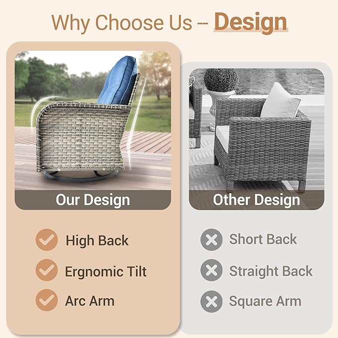 - Swivel Rockers: Designed for both 360Β° swivel and front to back rocking.Selected thicken and stable mechanism for smoother and quieter rotation as well as safer glider rocking