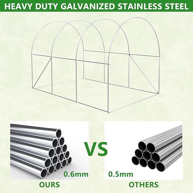 - 【Sturdy Workmanship】This greenhouse is built to last with a heavy-duty galvanized steel frame and durable PE covering. Designed to withstand wind, water, snow, and UV rays, it creates a safe haven for your plants. This portable greenhouse features temperature insulation and reinforced seam edges to ensure that plants continue to grow healthily in a stable environment regardless of weather conditions.