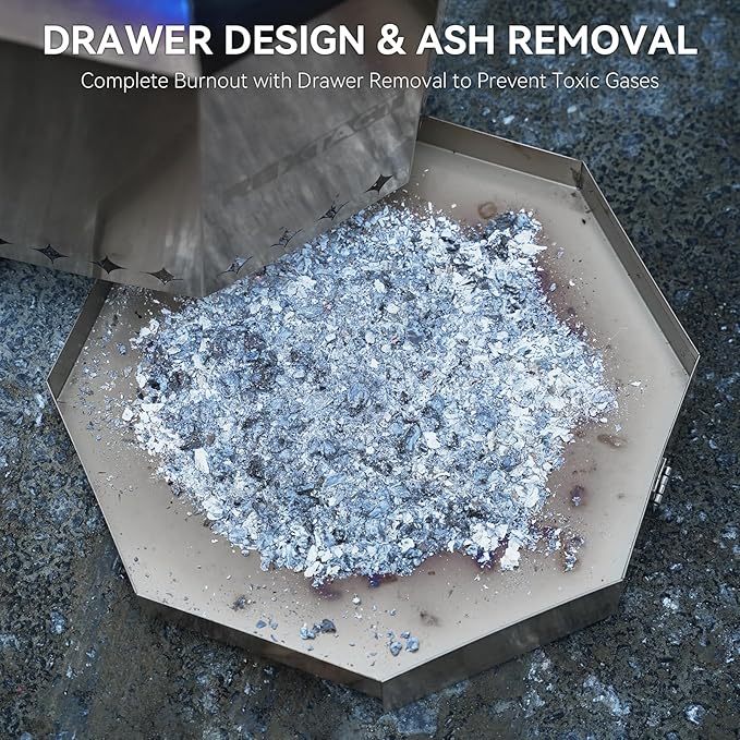 - √Removable Ash Drawer for Easy Maintenance: It allows for quick and straightforward cleaning, maintains proper airflow, promotes complete combustion, and greatly reduces the risk of generating toxic fumes.