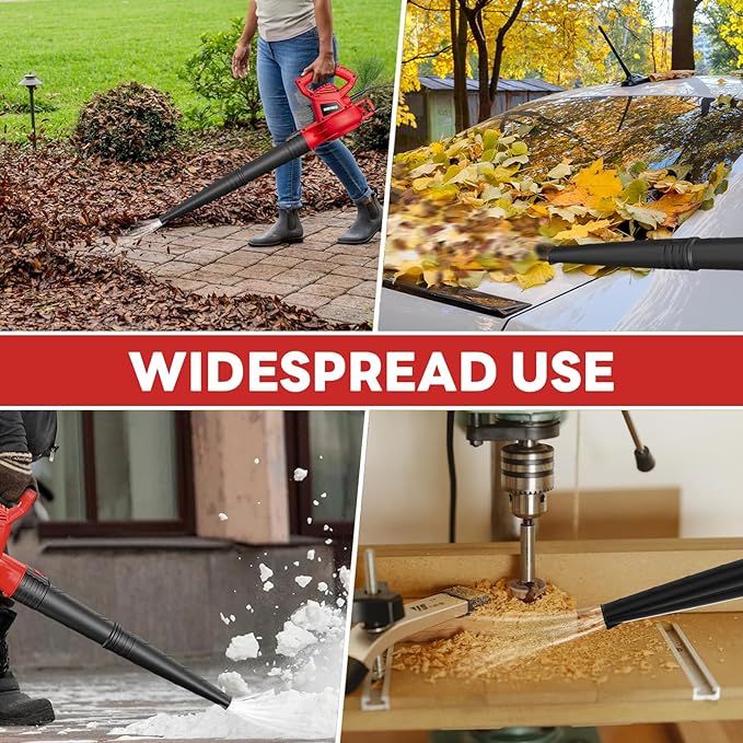 - 【MULTIFUNCTIONAL】The small leaf blower is perfect for sweeping leaves and debris from garages, driveways, outdoor patios and gardens, or clearing hard-to-reach corners, and also effectively removes snow, dust, debris, cobwebs,dries out automotive surfaces.