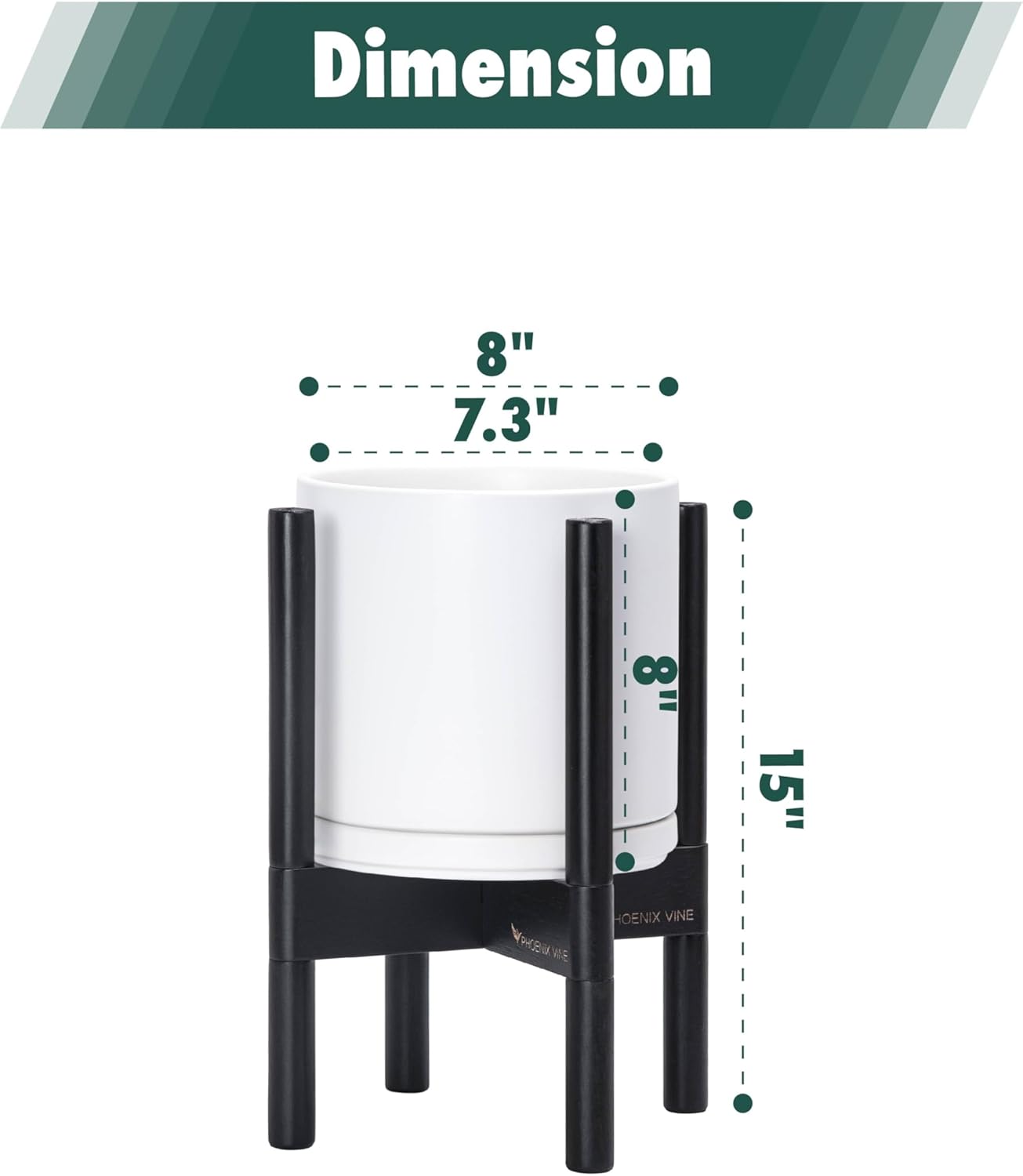 - 8 Inch Pot with Stand Set: Planter size: 8"Diameter x 8"H; pot with stand total height: 15 inch.