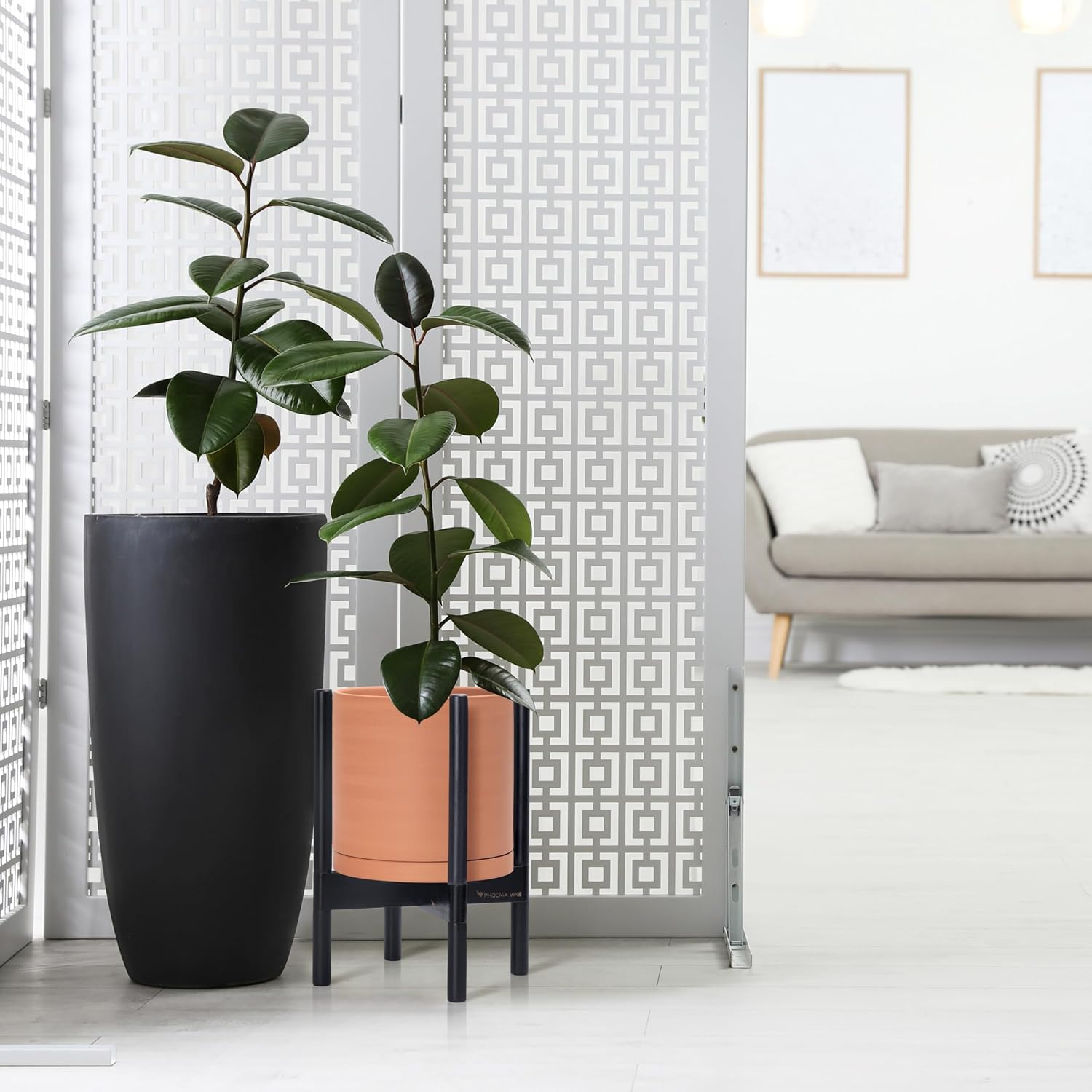 - A Complete Set: Mid-century terracotta planter, combined with a ebony wood stand that match perfectly together and looks great in anywhere.