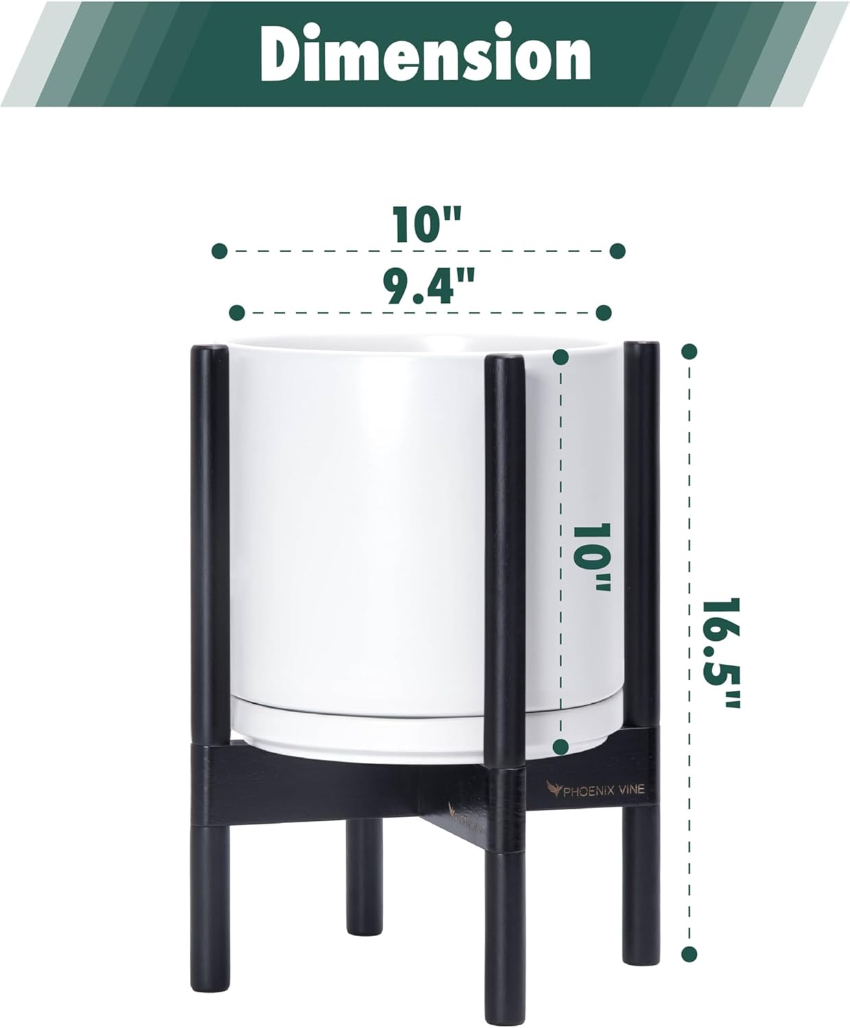 - 10 Inch Pot with Stand Set: Planter size: 10"Diameter x 10"H; pot with stand total height: 16.5 inch.