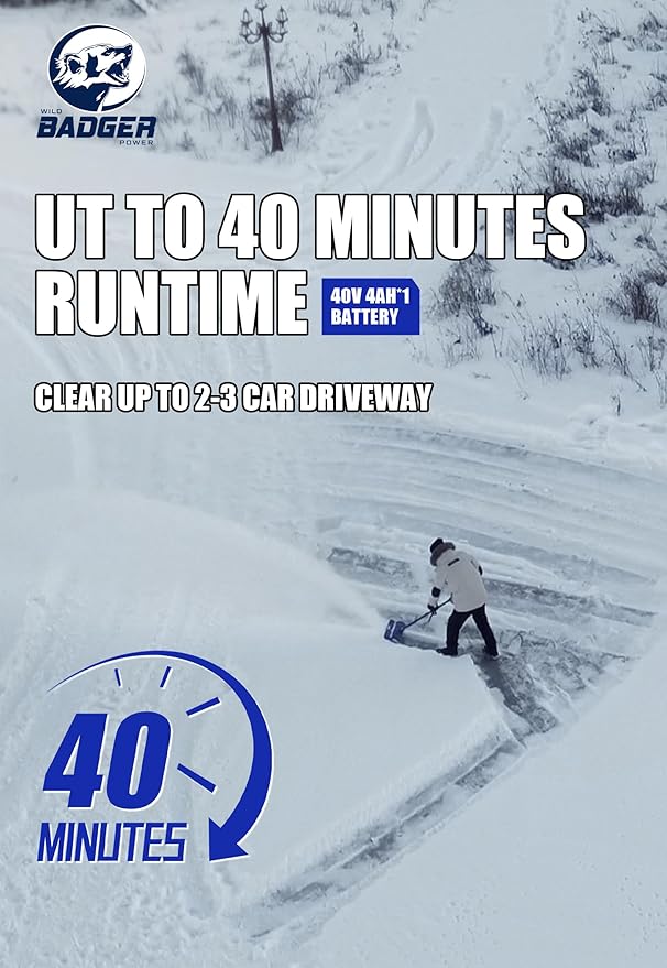 WILD BADGER POWER Electric Snow Shovel 40V 15" Cordless Brushless with 4.0Ah Battery and Charger for Wet Snow and Heavy Snow