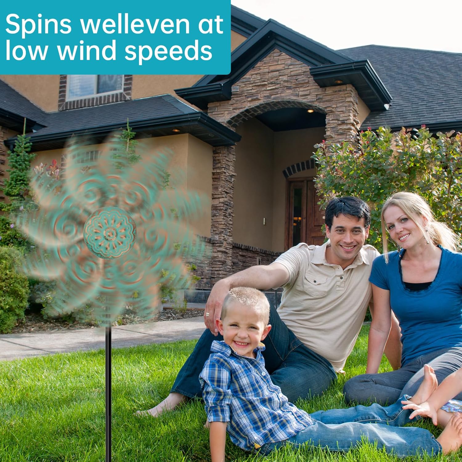 - Easy Installation: The base of the garden wind spinners can be inserted directly into the soil or grass without any tools, The garden pinwheels has long-lasting waterproof and rust resistant coating, which can be used in various weather conditions