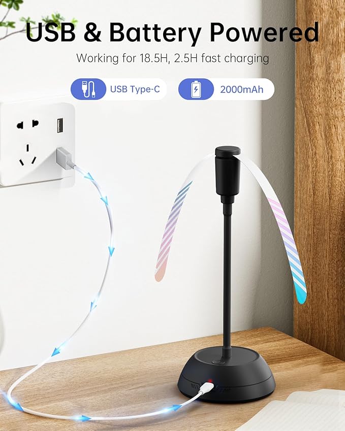 - Hidden Hook Design: There is a hidden hook at the bottom of the portable fan. It can be used not only on the desktop but also when hung up. The fan blades are separated, when you receive the product, you need to install them by yourself