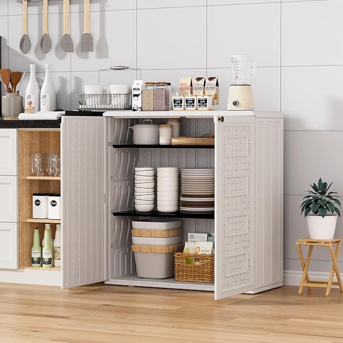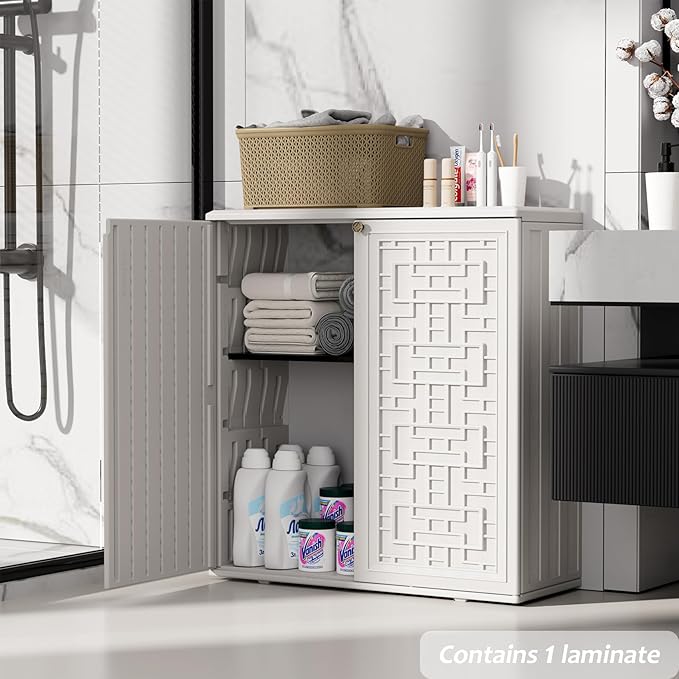 - Customizable Shelving: We supply only one shelf for free with the outdoor plastic cabinet, the shelving size is 33"L x10"W x 0.6"H