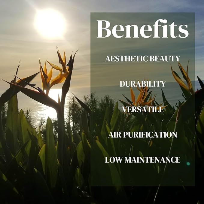 - ✨HARDY AND AIR-PURIFYING: The Bird of Paradise is not only hardy and easy to care for, but it also purifies the air around it, improving the environment’s air quality. Perfect for home or office decor, it offers both aesthetic appeal and health benefits.