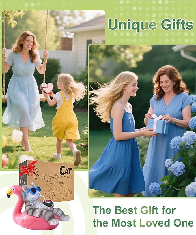 - Best Gifts for Loved Ones: The cute cat and flamingo statues comes in their own beautifully designed box. A perfect choice as house warming gifts,birthday gifts for Women,Grandma,Fathers Day,Mothers Day gifts. Nice present to your nature loving, gardeners