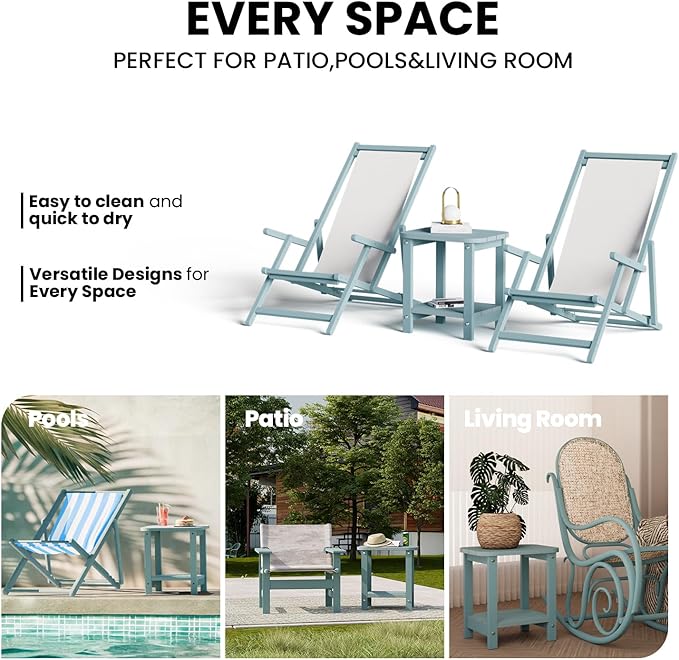 - 【HDPE Material】Outdoor side table is made from recycled HDPE, featuring a textured surface and wood grain. This material prevents warping, denting, rotting, and fading, effectively addressing the issues of solid wood.