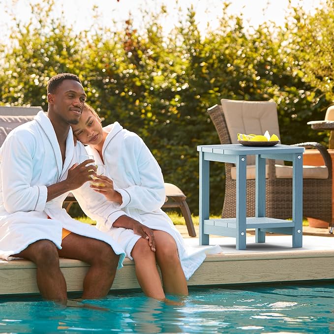 2-Tier Outdoor Side Table, 16" Adirondack Small Side Table All Weather Resistant, Patio End for Outside or Indoor, Patio, Yard, Pool, Porch, Garden, Lake Blue