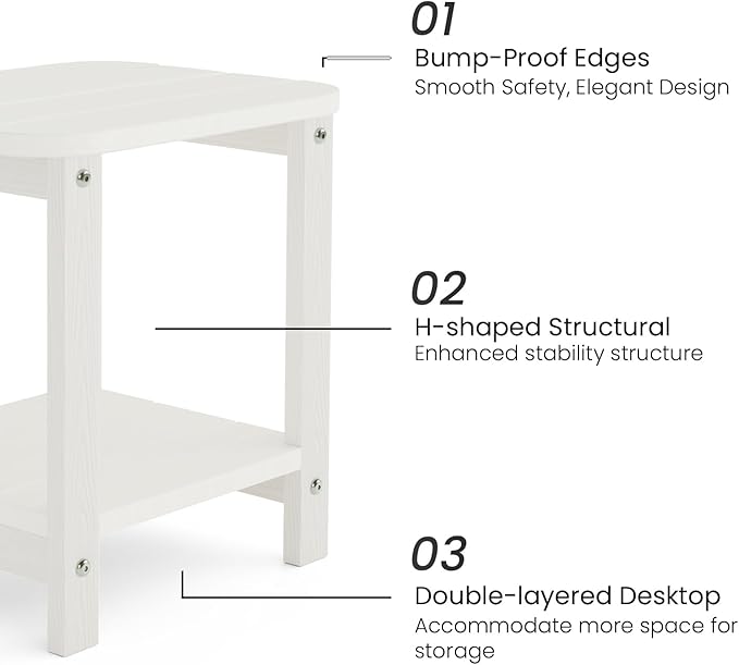 2-Tier Outdoor Side Table, 16" Adirondack Small Side Table All Weather Resistant, Patio End for Outside or Indoor, Patio, Yard, Pool, Porch, Garden, White