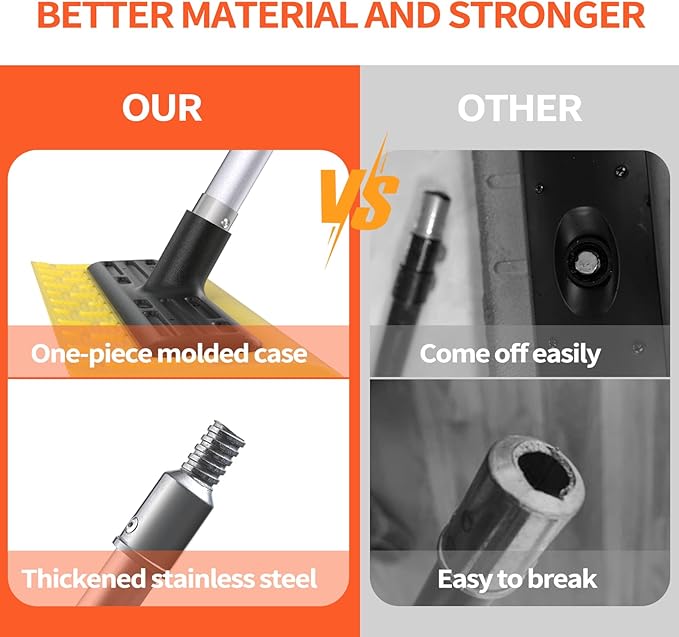 - [Integrated Handle Cover and Shovel Head] It prevents the shovel head from loosening or breaking, maintaining stability even after extended use. The 3/4β Acme Thread Pole Tip is made of a metal alloy for durability and can safely be overtightened. The perfect angle setting of the snow rake effortlessly cleans roof valleys and hard-to-reach areas for a thorough clean.