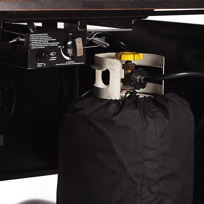 • This set comes with four loveseats, quick drain cushions, glass wind blocker, clear fire glass, a table lid, propane cover and a protective fabric table cover