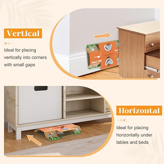 - [All-in-One & Effective Roach Traps Indoor]: Roach sticky traps contain 18 pack glue traps and roach baits, which are ideal for capturing all bugs including roaches, spiders, crickets, beetles, ants and any other vermin infesting your home. Sticky traps for vermin can be flat or folded, which makes it easy to place at any narrow angle.