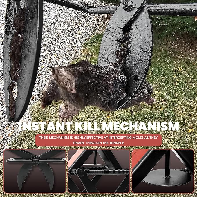 - POWERFUL SPRING ACTION FOR EFFECTIVE MOLE CONTROL- Equipped with a robust spring mechanism, these traps deliver immediate and humane results, effectively eliminating moles from your lawn or garden
