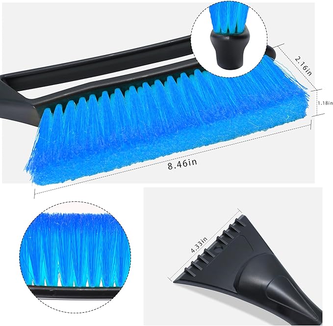 - Anti-Scratch Bristles & Strong Ice Shovel: The smooth, polished bristles gently remove snow without scratching your car's paint, maintaining its beautiful appearance. The strong, lightweight ABS plastic blade cuts through ice easily and is durable enough to withstand harsh winter conditions.
