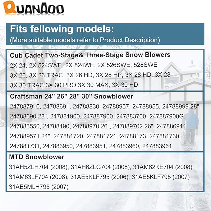 - Compatible With Cub Cadet 2X 24, 2X 524SWE, 3X 26, 2X 526SWE, 2X 528SWE, 3X 30 TRAC, 3X 30 PRO, 3X 30 MAX, 3X 30 HD, 3X 28 HP, 3X 28 HD, 3X 28, 3X 26 TRAC, 3X 26 HD, 3X 24 HD, 3X 24, 2X 530SWE, 2X 524WE, 2X 30 TRAC.