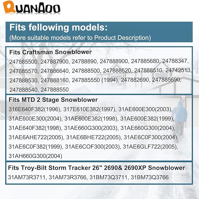 - Fits for MTD 31AE6LFH718, 316E610E382, 316E640F382, 317E610E382, 31AE600E382, 31AE640F382, 31AE600E382, 31AE6C0F382, Most 2 Stage Snowblowers (1995-2012).
