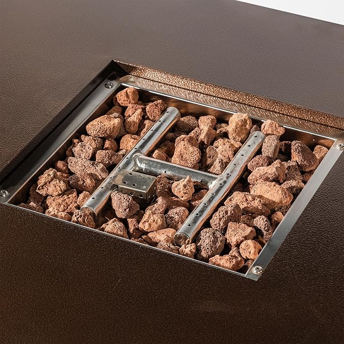 - 🔥🔥【High quality, premium configuration】It is alos firepit table for outside propane. Our covered fire pits are subjected to a mail-order drop test and 100% ignition test before fire pit gas go on the market. When the fire pit is heating which will produce 50,000BTU, We use double insulation panels to keep propane tank safe.