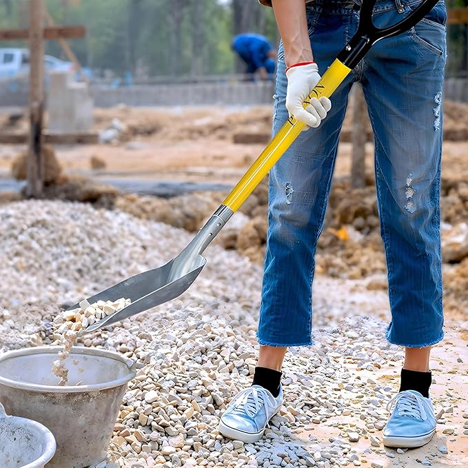- Heavy-Duty Aluminum Blade – Built with a durable 12-inch wide aluminum-steel blade, this scoop shovel is designed for efficient removal of snow, sand, horse manure or mulch without bending or warping, even under tough working conditions.