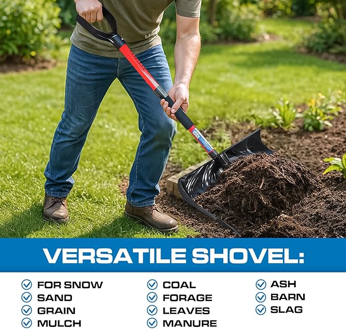 - Durable & Lightweight: Built to last with a sturdy fiberglass handle, this Snow Shovels combines strength and portability, ensuring reliable performance even during heavy snowfalls.