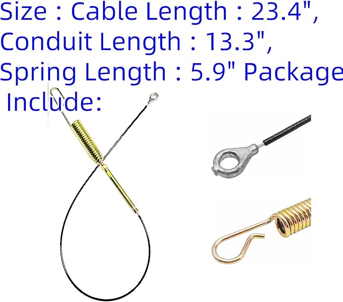- Size : Cable Length : 23.4",Conduit Length : 13.3", Spring Length : 5.9" Package Include: 2x Upper Traction Cable