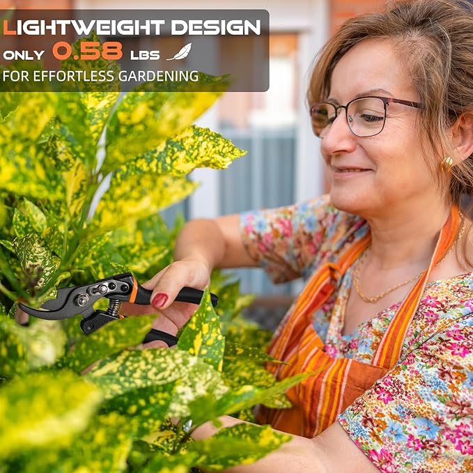 - FEMALE & ELDERLY-FRIENDLY: The ergonomically designed, non-slip rubber handles reduce hand fatigue and ensure a comfortable, stable grip. The cushioned design minimizes wrist and hand strain, making these pruners ideal for long use and for those with arthritis or anyone needing extra comfort