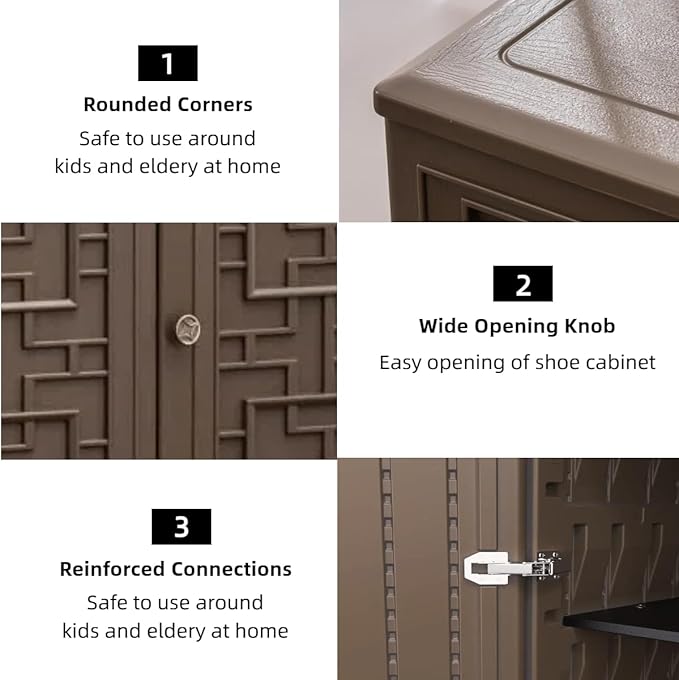- Customizable Shelving: Our Outdoor Storage Shed includes versatile compartments, we supply only one shelf for free with the outdoor plastic cabinet, the shelving size is 33"L x10"W x 0.6"H