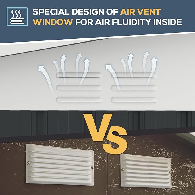 - Sturdy and Resilient: Reinforced metal plates lend this shed a weight that surpasses most alternatives on the market, greatly enhancing its stability and far exceeding lower-cost options. It's built to withstand extreme weather, with exceptional wind resistance up to 70 mph.