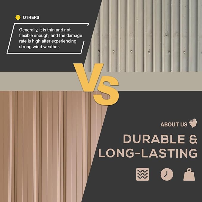 - Sturdy and Resilient: Reinforced metal plates lend this shed a weight that surpasses most alternatives on the market, greatly enhancing its stability and far exceeding lower-cost options. It's built to withstand extreme weather, with exceptional wind resistance up to 70 mph.