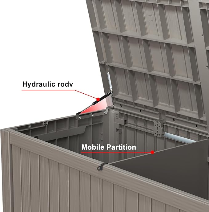 - Elegant Yet Durable: Crafted from aggregate resin with a wood grain finish, this storage box offers both aesthetic appeal and durability. It's engineered to resist water, UV rays, fading, rust, peeling, and warping, ensuring minimal maintenance for years.