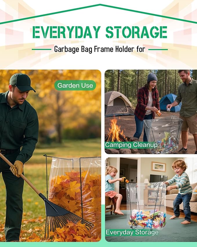 - This foldable trash bag holder stand sets up in seconds. Take it anywhere as a portable trash can — great for camping, tailgates, or yard work.