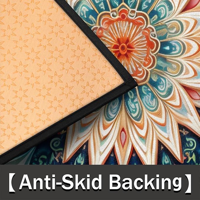 cfpolar Boho Vintage Mandala Flower Shape Half Round Semicircle Non Slip Soft Area Rug for Front Door Indoor Entrance Wear Resistant Welcome Mat for Garage Patio Home Decor 24 x 36 in