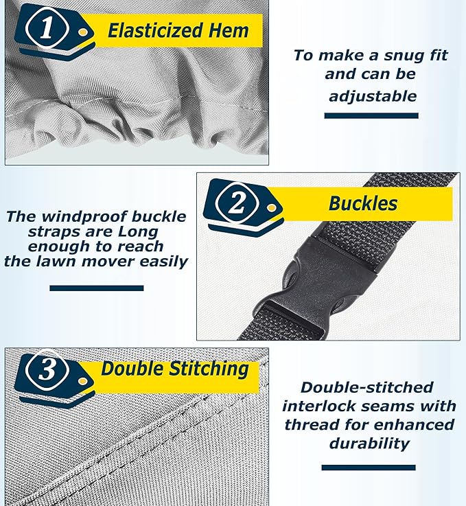 - Windproof || Elastic hem cord around the bottom can covers walk behind snow blower tightly and buckle straps on the back make adjustment for a snug fit.