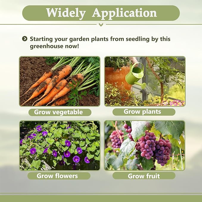 - Walk-in Spacious Greenhouse Experience the ultimate gardening environment with our walk-in greenhouse. It’s large enough to accommodate a variety of plants and allows for flexible arrangement of flowers. Designed to protect your plants from frost and excessive heat, this greenhouse creates an optimal greenhouse effect for superior planting results.