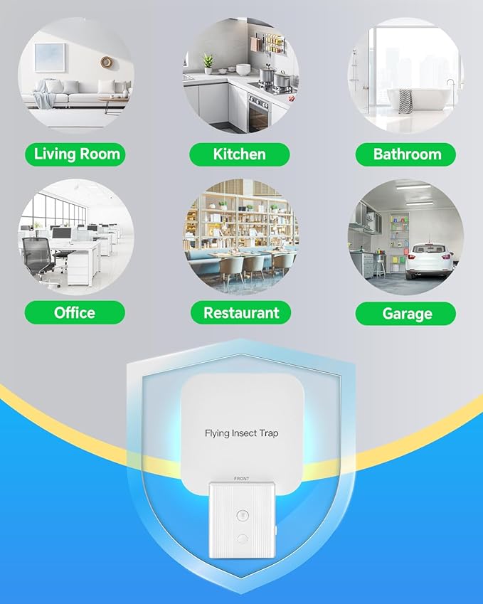 - ✅【Versatile Flying Insect Trap】This plug-in fly catcher adopts a plug-and-play approach, providing reliable protection for homes, offices, commercial and industrial spaces. It effectively safeguards your environment from flying insects, ensuring a safe and comfortable space for all.