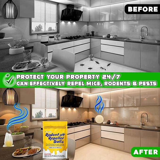 - PACKAGE INCLUDES: 12Pcs mothballs for mice and each moth ball can protect an area of 9 sq ft, you can replace the mothball after 30-45 days or when the scent diminishes.