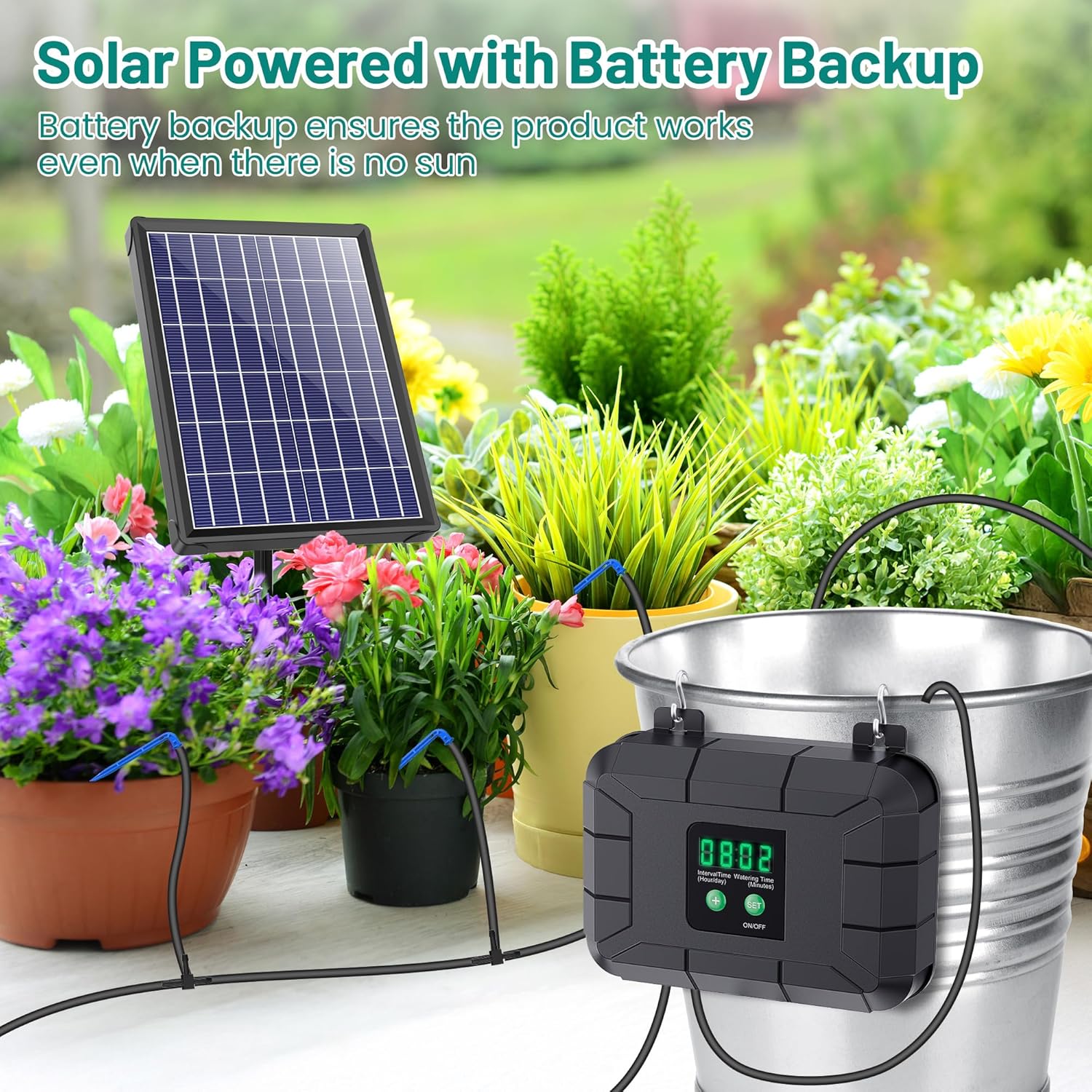 Automatic Drip Irrigation Kit, 8W Solar Irrigation System for Garden with Digital Programmable Timing Modes, Solar Watering System Take Care Your Plants