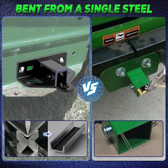 - Quality Guarantee: Zero turn hitch square receiver tube is bent from a single steel piece, more durable and more adaptable than welding. The heavy-duty steel is not prone to warping, and the powder coating can handle all kinds of weather and is not prone to rusting, ensuring durability and a longer service life.