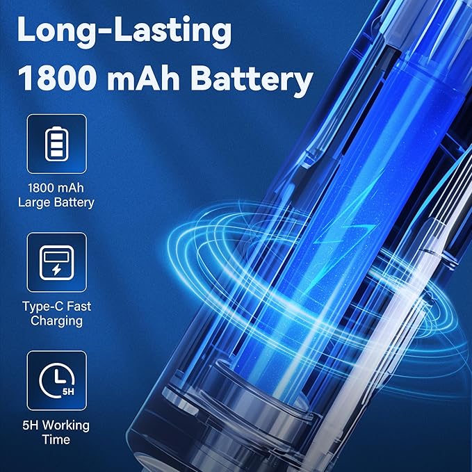 - ⚡ 1800mAh Rechargeable Battery - Enjoy longer use with the 1800mAh rechargeable battery and fast Type-C charging. The display on the handle clearly shows the battery level for easy monitoring. Plus, it’s an eco-friendly choice—no more disposable batteries required.