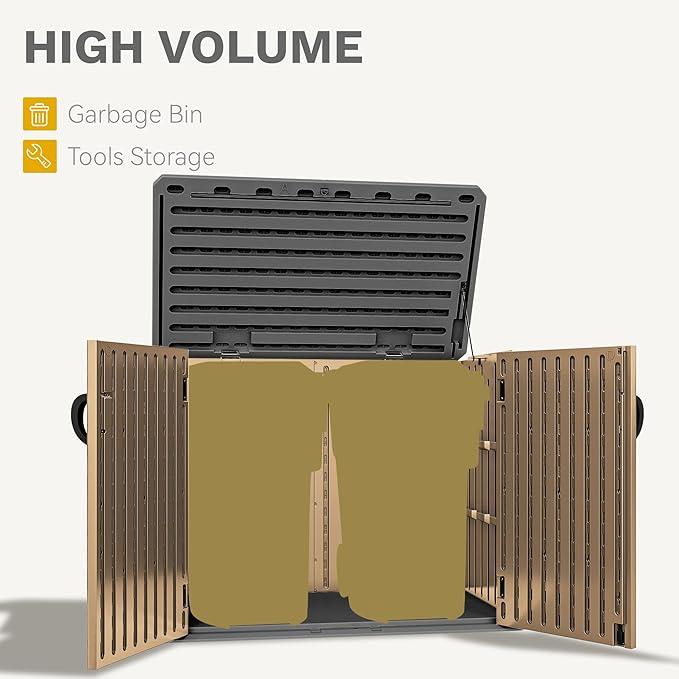 DWVO Outdoor Storage Shed, Weatherproof Resin, 35 Cu Ft Capacity, Horizontal Design, X-Shaped Lockable Door, Suitable for Bike, Garden Tools, Trash Cans, Brown