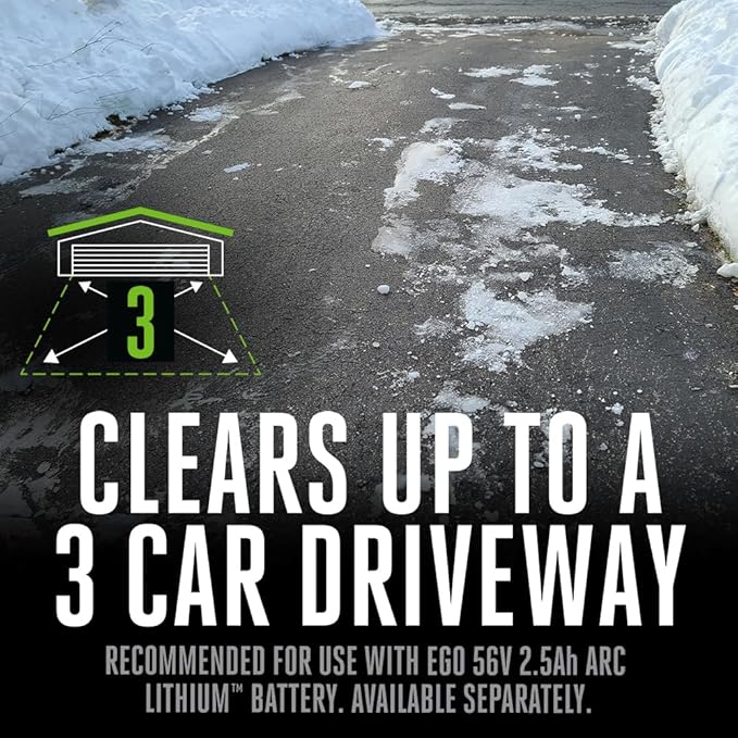 - Clears up to a 3-car driveway with 6 inches of snow with a recommended 2.5Ah ARC Lithium battery (available separately)