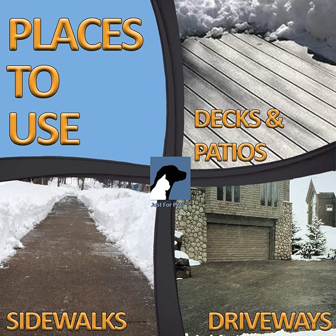 JUST FOR PETS Snow & Ice Melter Safe for Pets & Paws Contains No Toxic Chlorides or Painful to The Paw Rock Salt, Safe for Dogs & Cats. Fast Acting, Works On Contact 36 x 35lbs Buckets Pallet