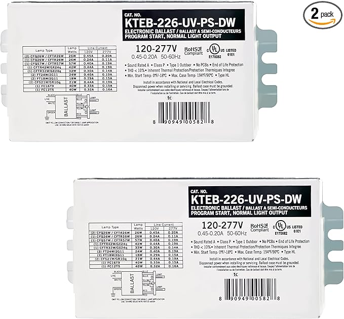OHLECTRIC 2 Pack - Replacement for Keystone KTEB-226-UV-PS-DW | 2 Lamp Compact Fluorescent Electronic Ballast | 26 Watts & 120-277V Input | High Power Factor & Program Start | UL Listed